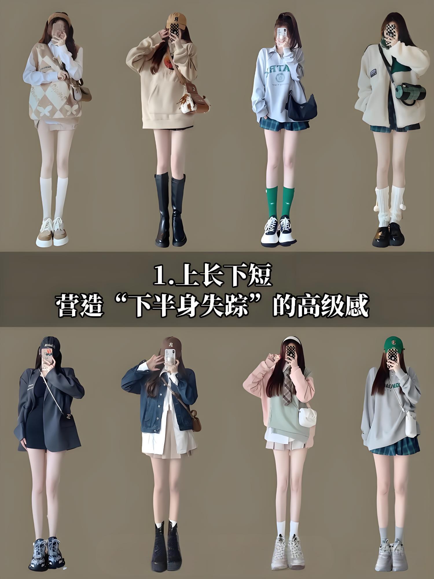 第一:上短下长(高个子和小个子都适合,但小个子要注意的是裤子不能太过于肥大,以免横向拉宽,更加显矮)第二:上长下短第三:上松下紧(这种穿搭不适合肩宽的姐妹哦,还