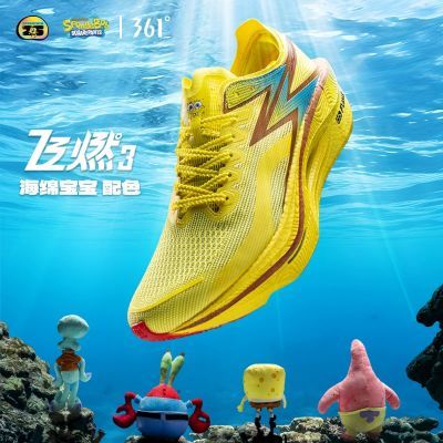 361°飞燃3【海绵宝宝】联名全掌碳板专业竞速马拉松减震运动跑鞋