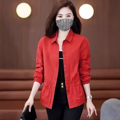 妈妈春季休闲百搭外套小个子时尚圆领上衣中年女士春秋小香风外套