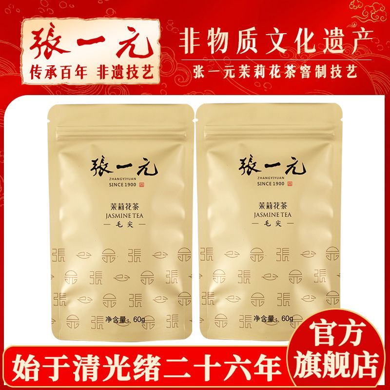 张一元茉莉花茶叶毛尖新春茶浓香型老北京口粮茶伴手礼品特种袋装
