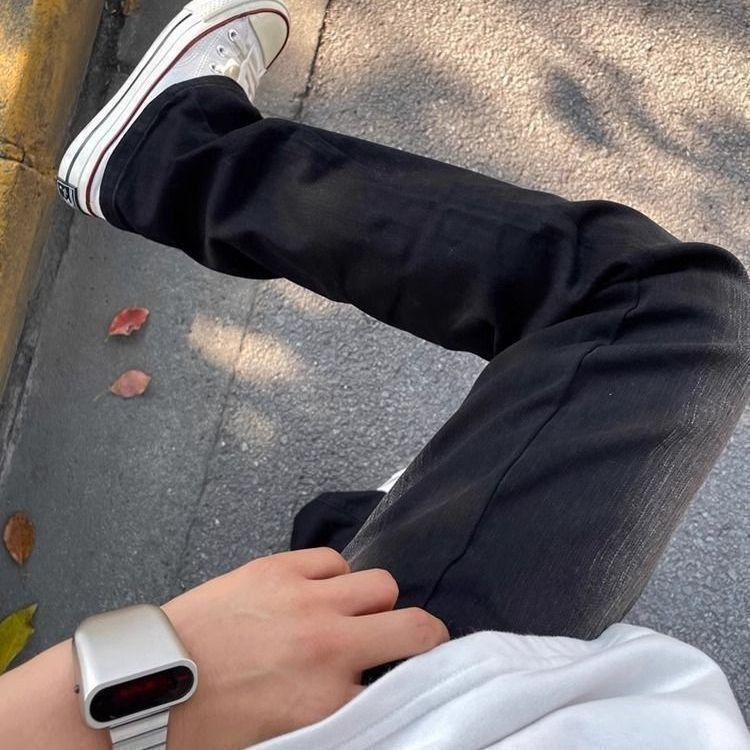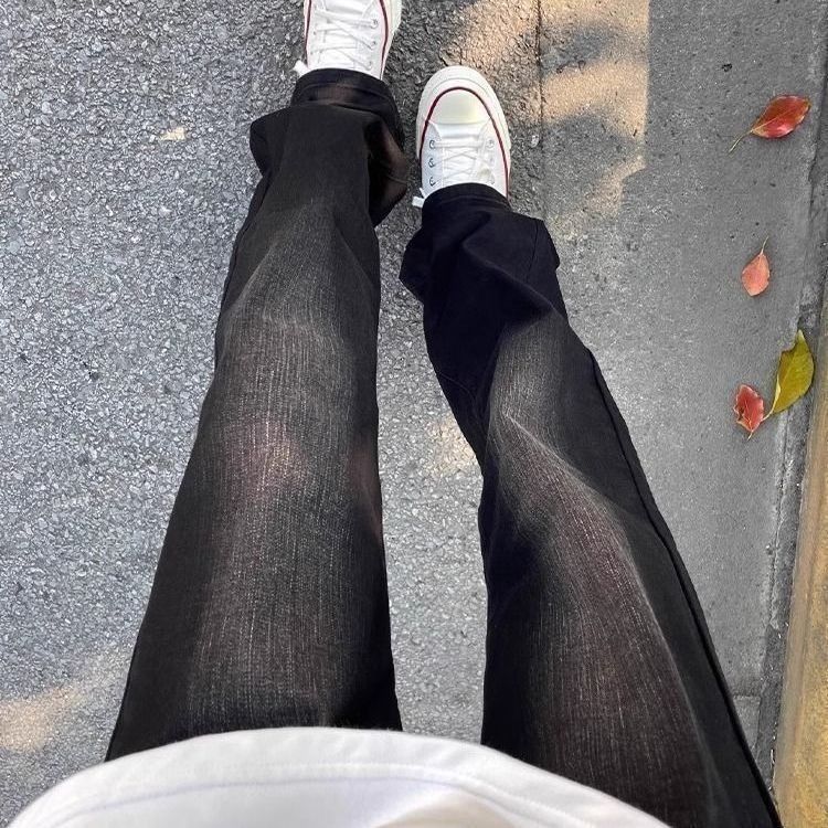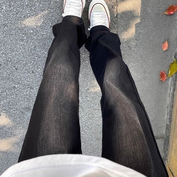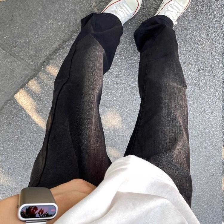 渐变黑美式高街微喇裤牛仔裤男女春秋款显瘦弯刀修身直筒裤