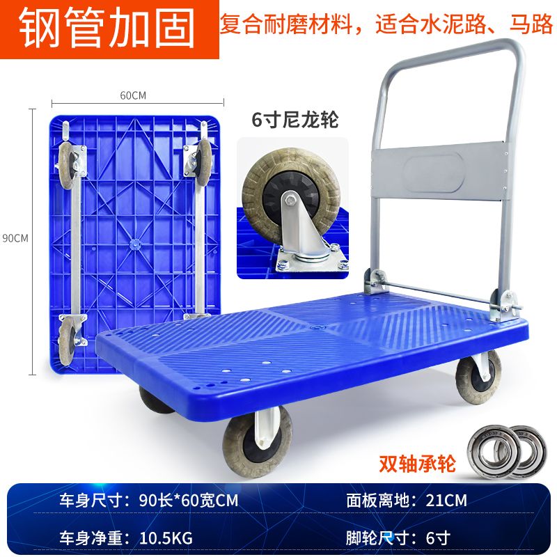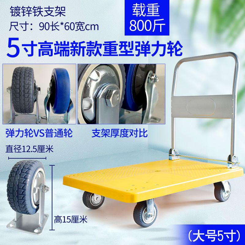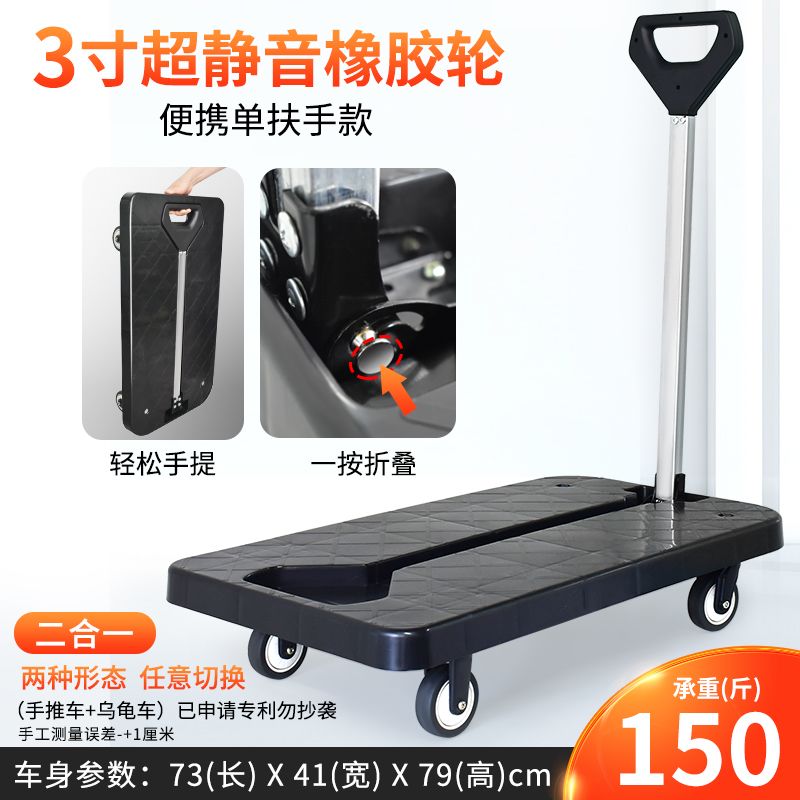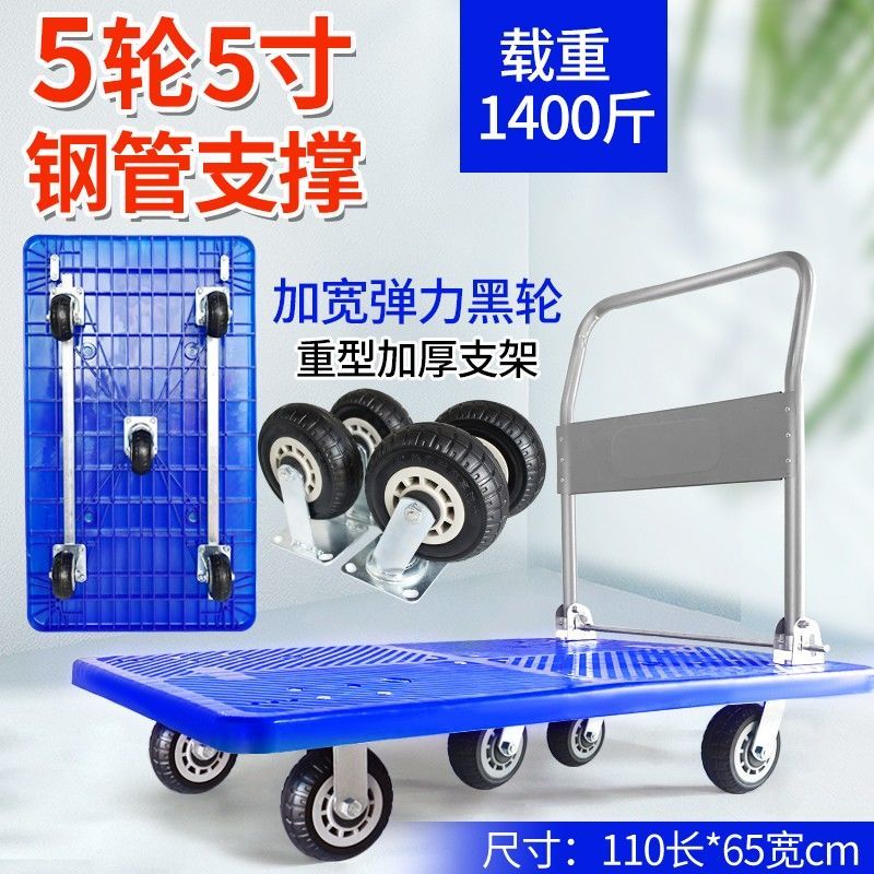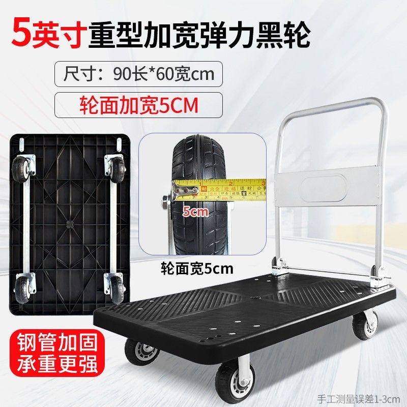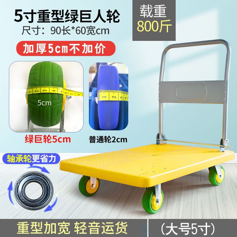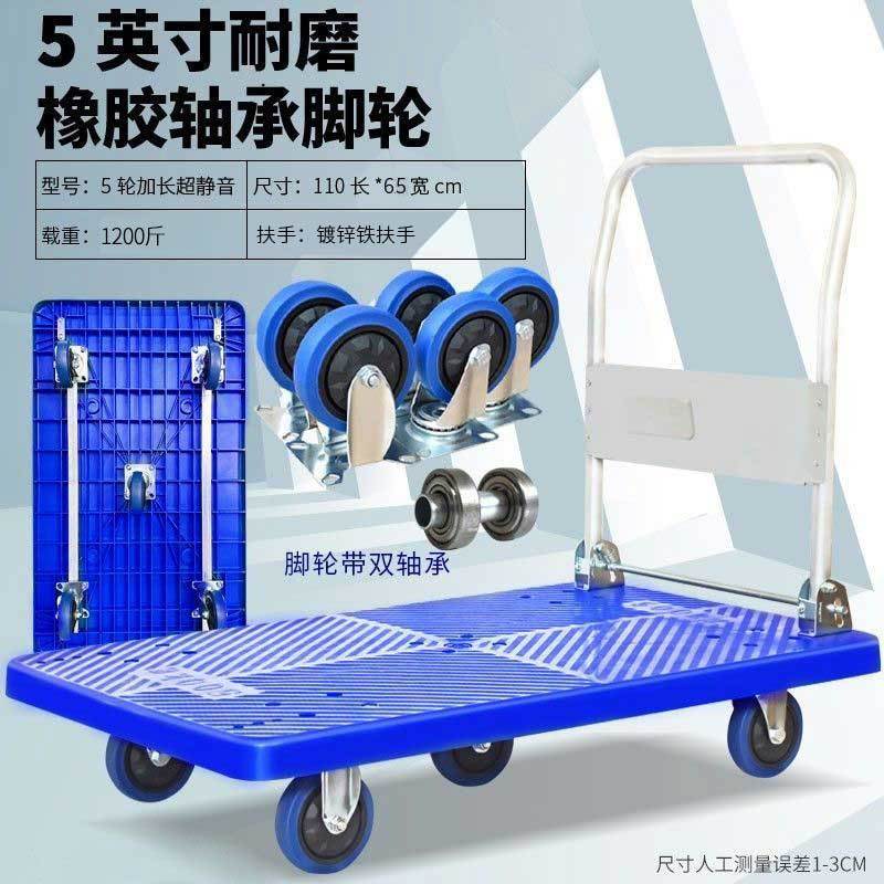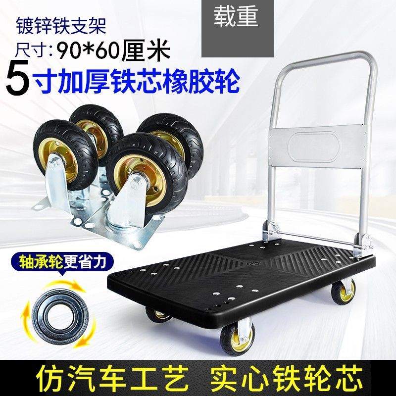 手推车拉货拖车小拉车折叠家用加厚四轮便携平板搬运车轻音小推车