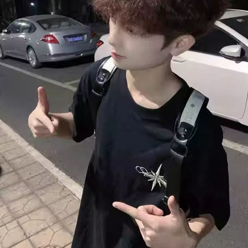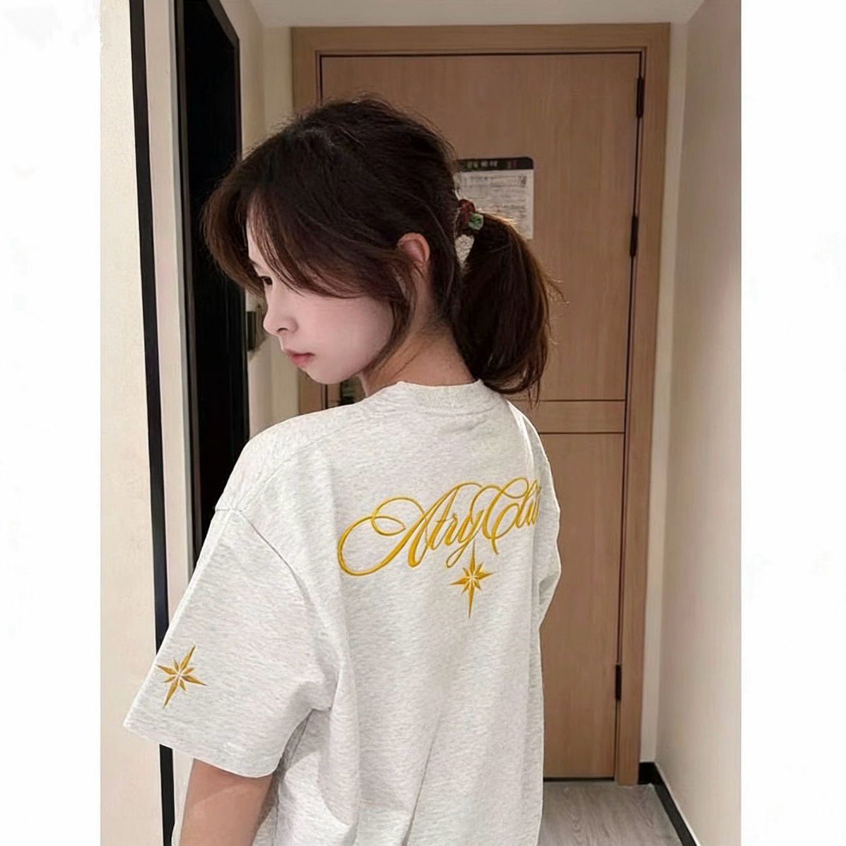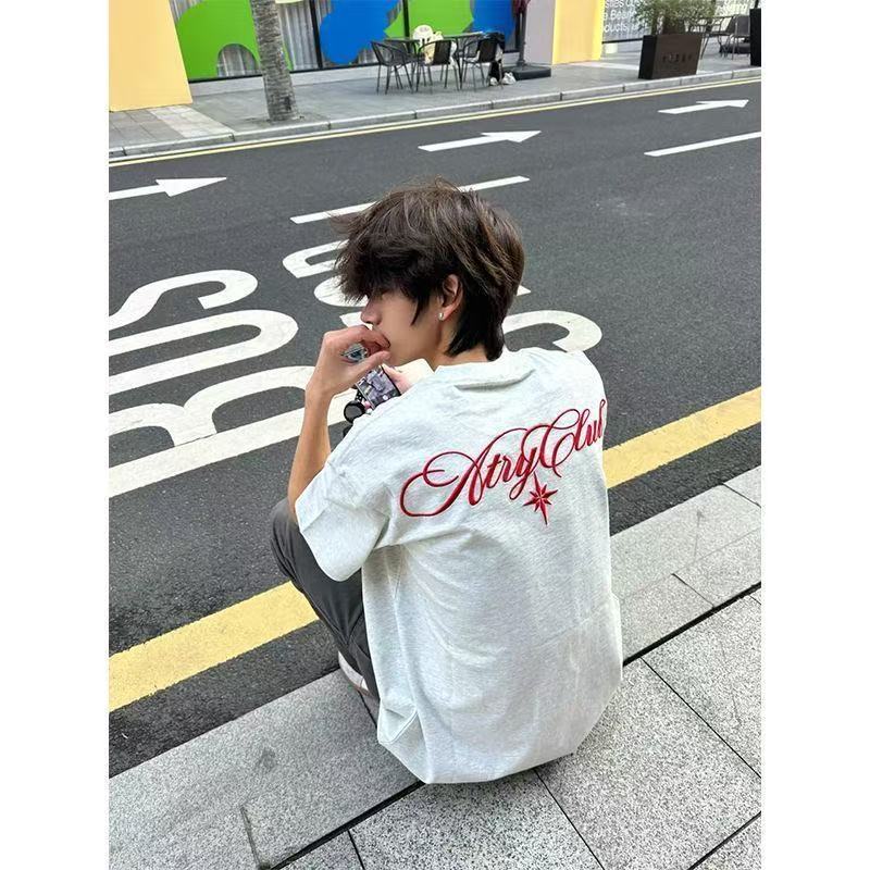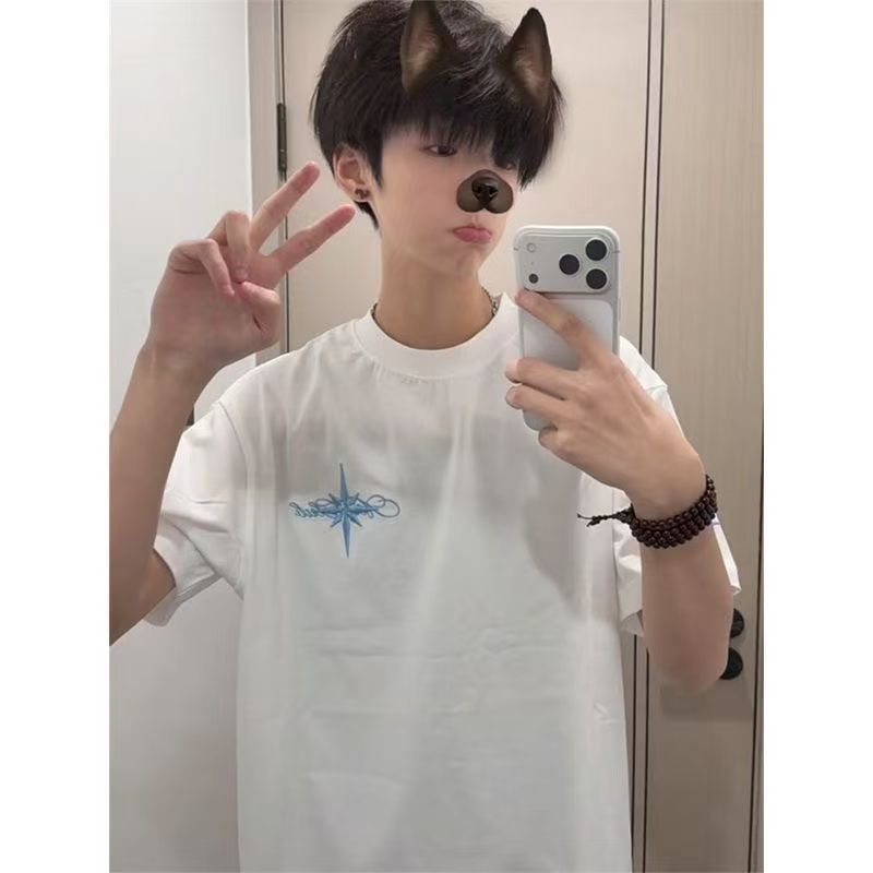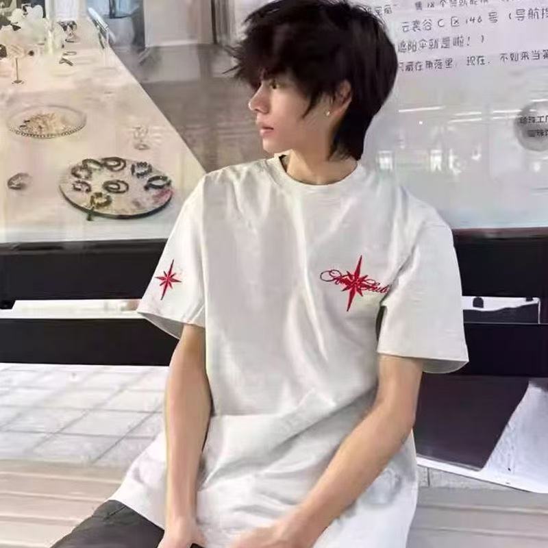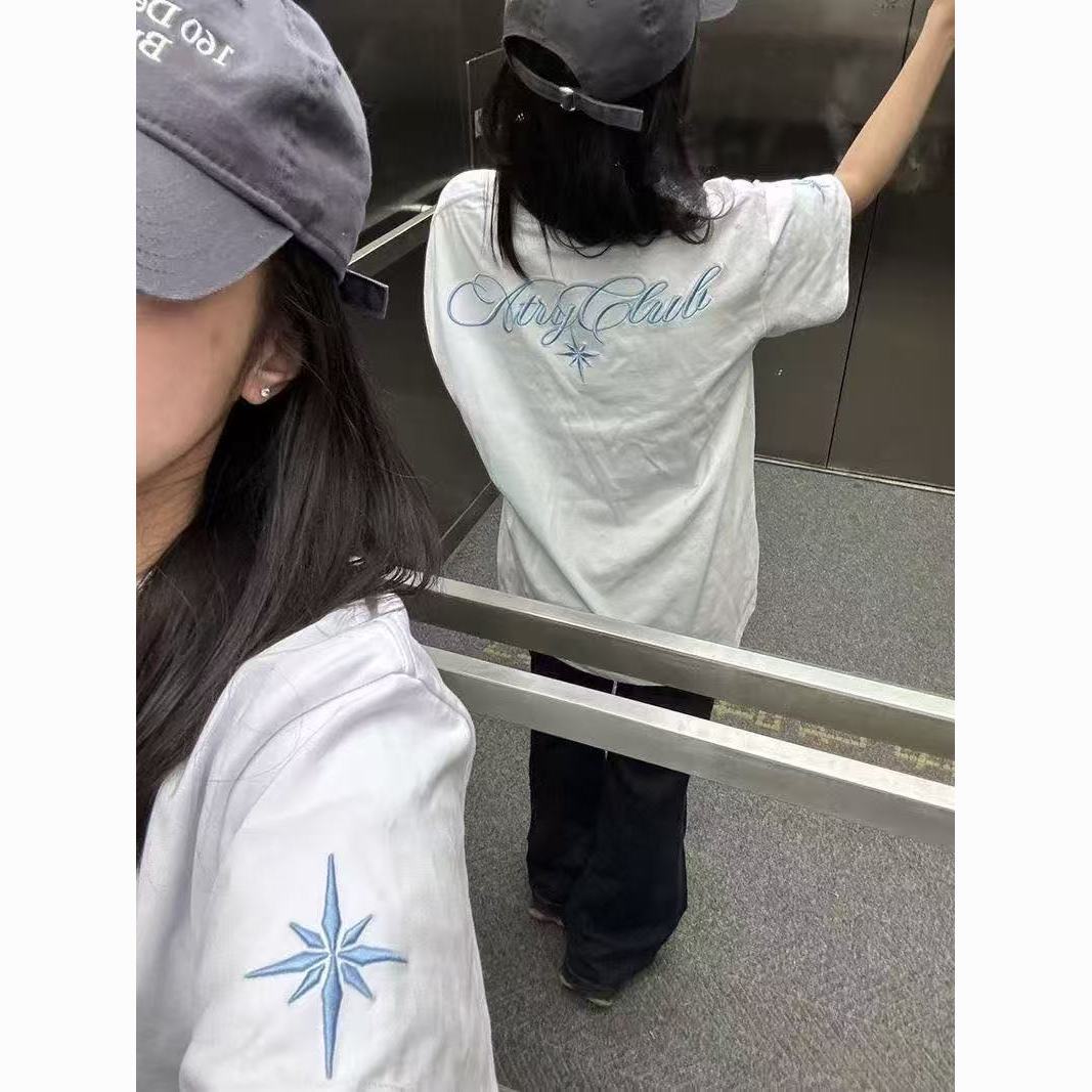 北极星刺绣字母纯棉短袖t恤男女美式高街潮牌慵懒设计感宽松上衣