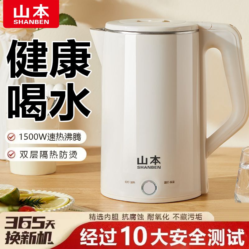 山本电热水壶家用优质不锈钢大容量自动断电保温轻音速热电烧水壶