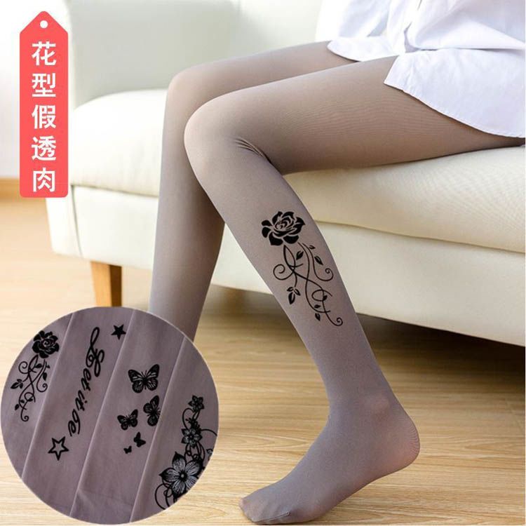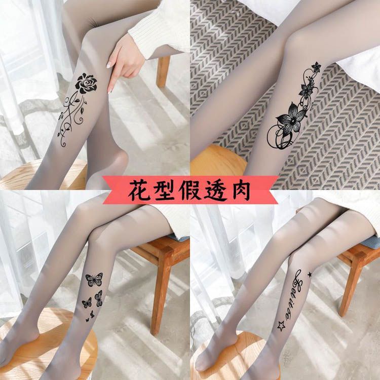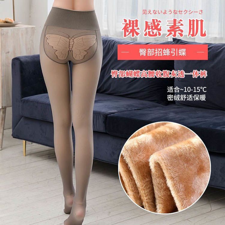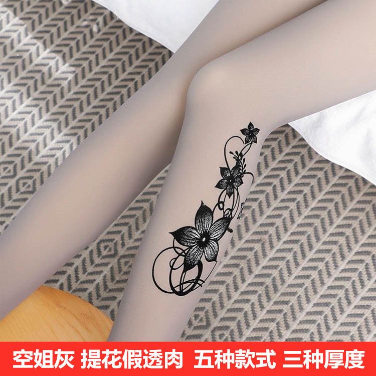 秋冬季加肥大码假透肉连裤袜女加绒加厚一体无缝高腰打底裤空姐灰