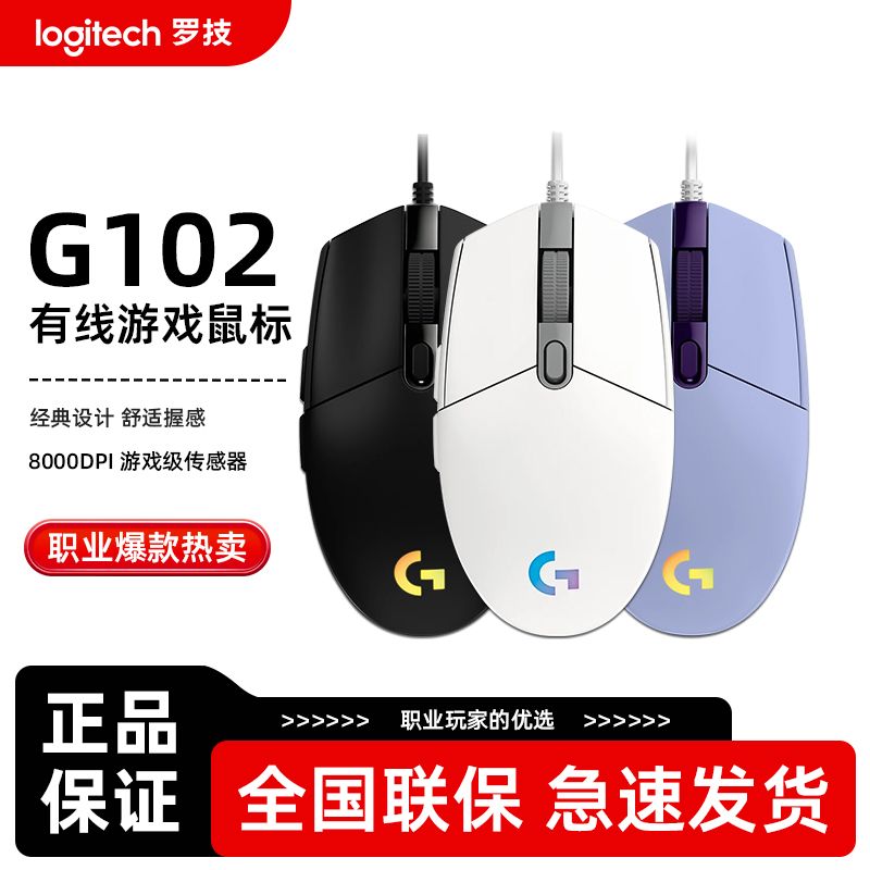 罗技G102有线鼠标二代电竞吃鸡游戏外设机械RGB灯光csgo打瓦鼠标