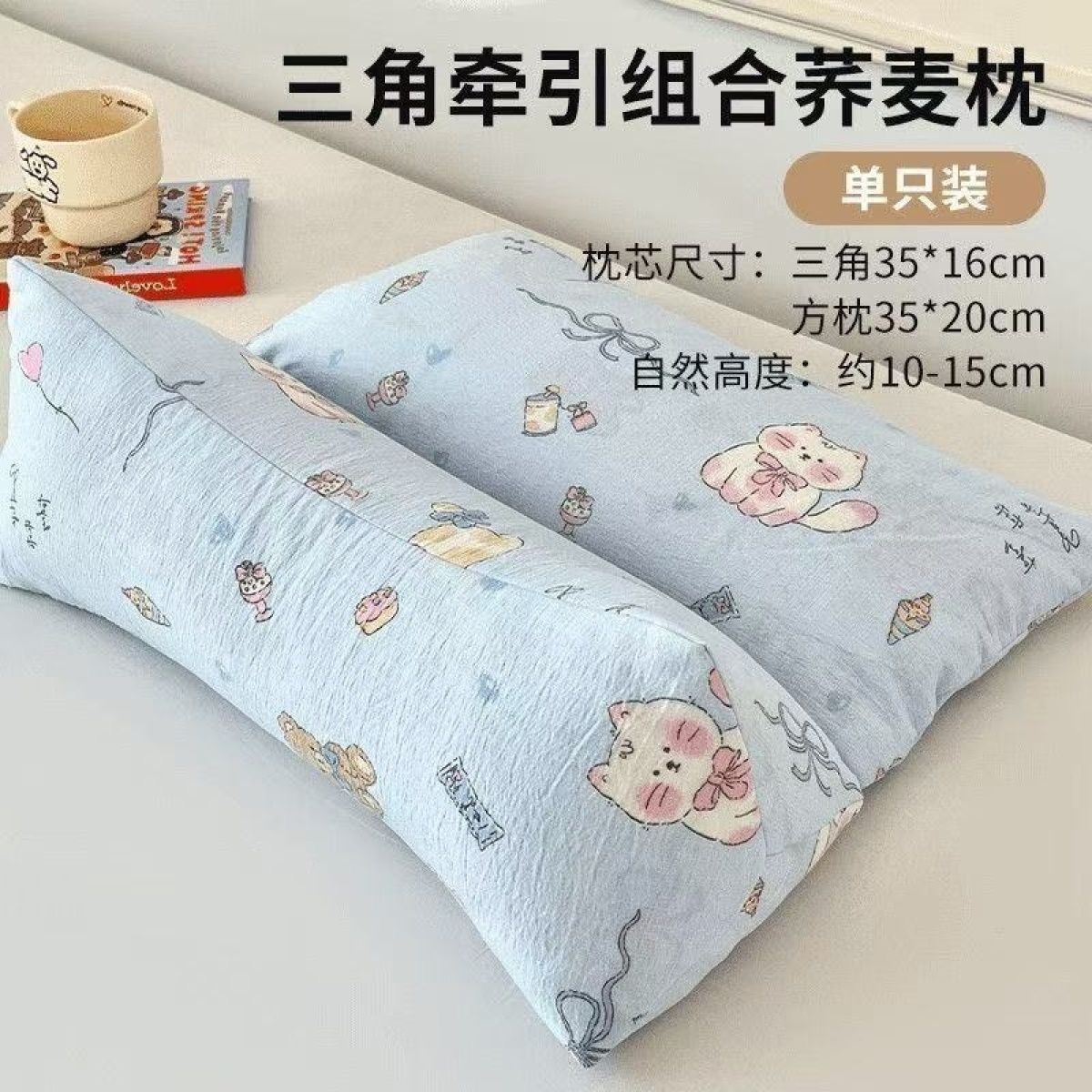 荞麦壳三角连体枕颈椎专用枕头助睡眠牵引枕成人助眠枕头安神助眠