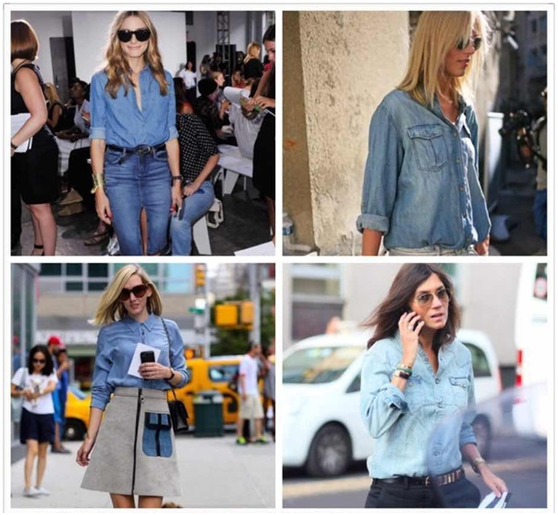 4.牛仔衬衫。简单,单穿,敞穿,打底穿,怎么穿都可以。