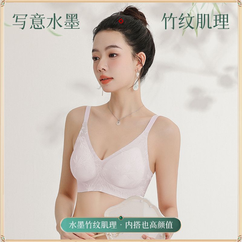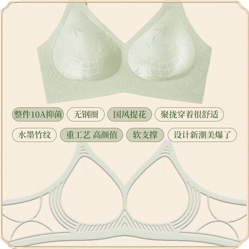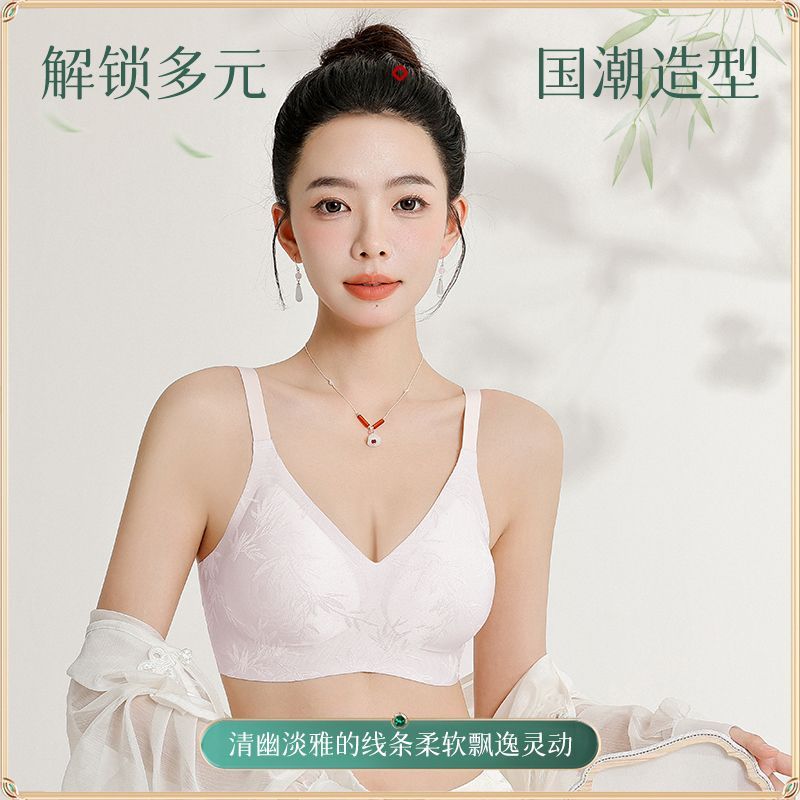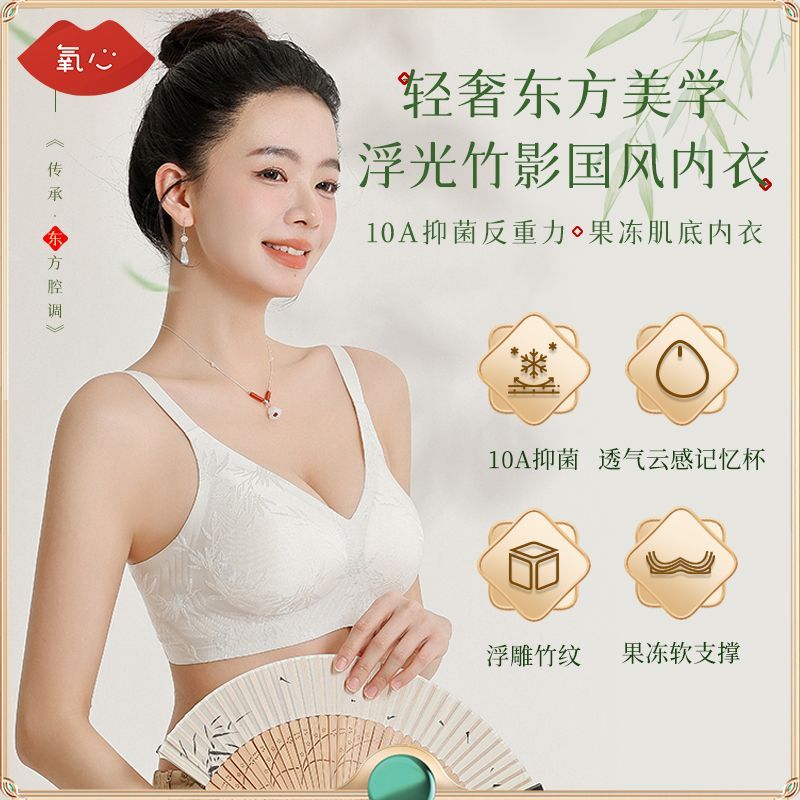 【2件装】Kissy氧心浮光竹影国风内衣女无痕抑菌果冻软支撑文胸罩