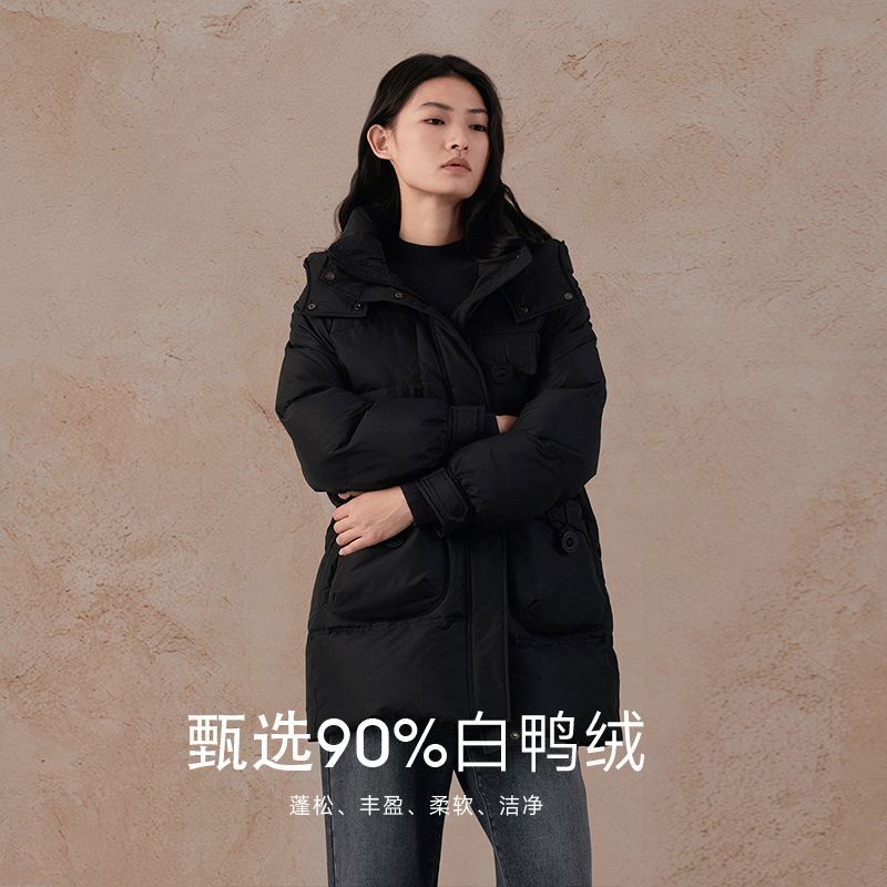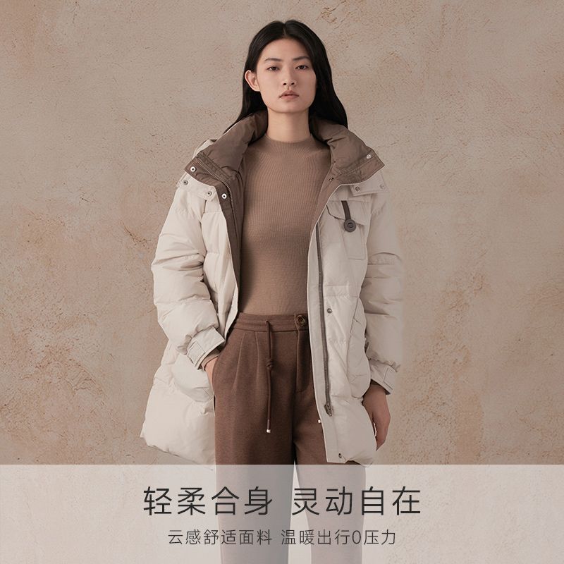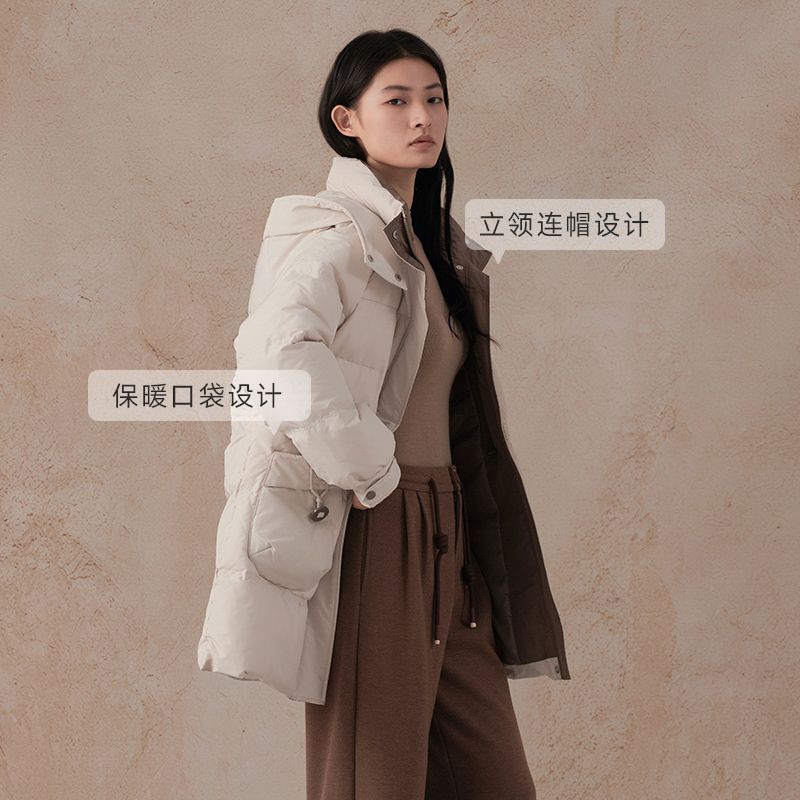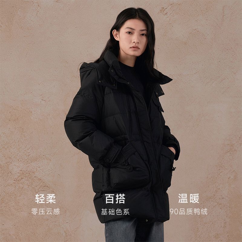 阿依莲商场同款2025冬季新品90白鸭绒保暖羽绒服爆款带帽加厚