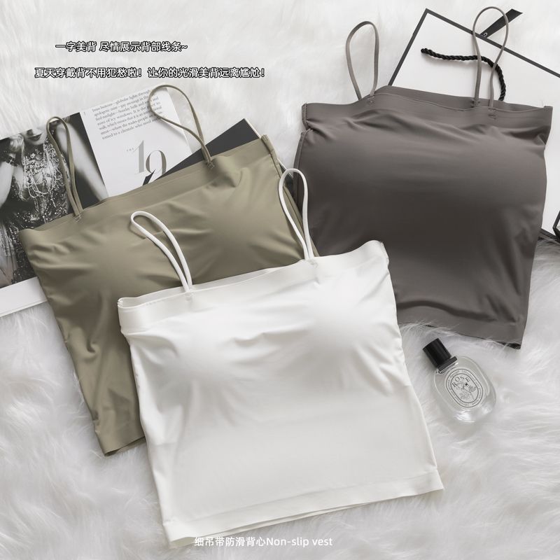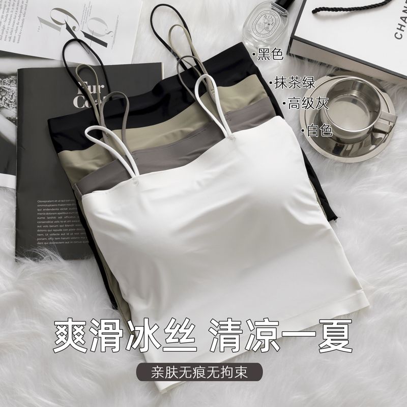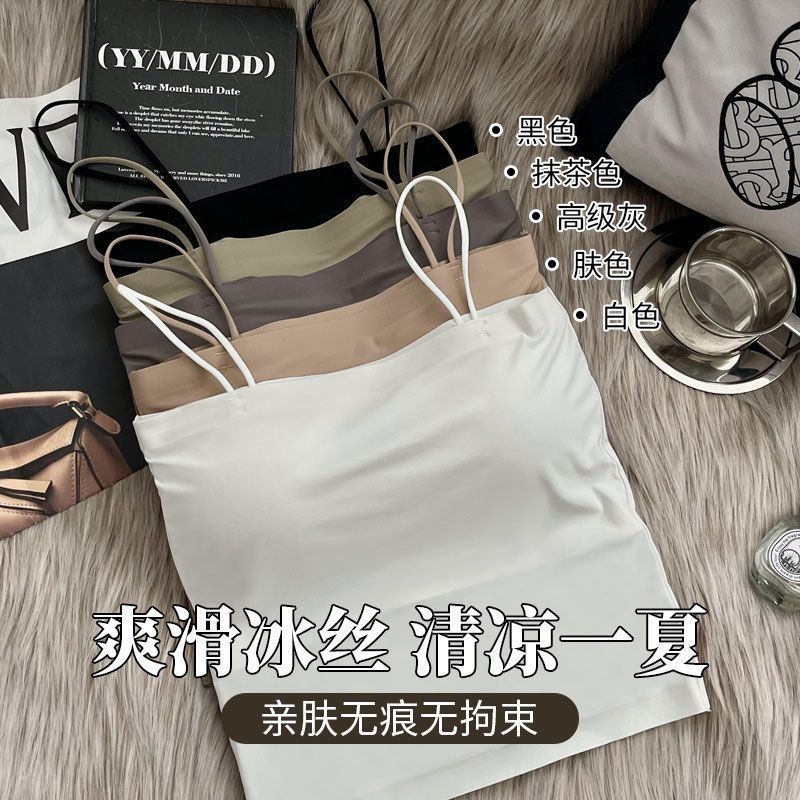 冰丝吊带小背心女内搭防走光带胸垫一体抹胸美背内衣文胸夏季薄款