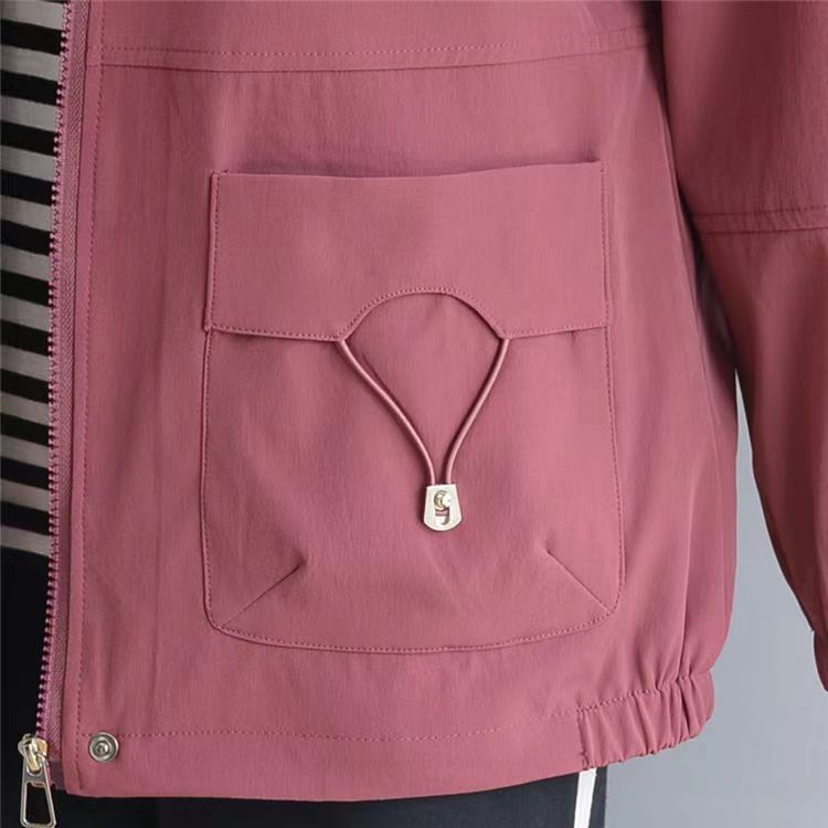 抖音同款妈妈装宽松大码中老年活帽短款纯色时尚百搭女士夹克衫衣