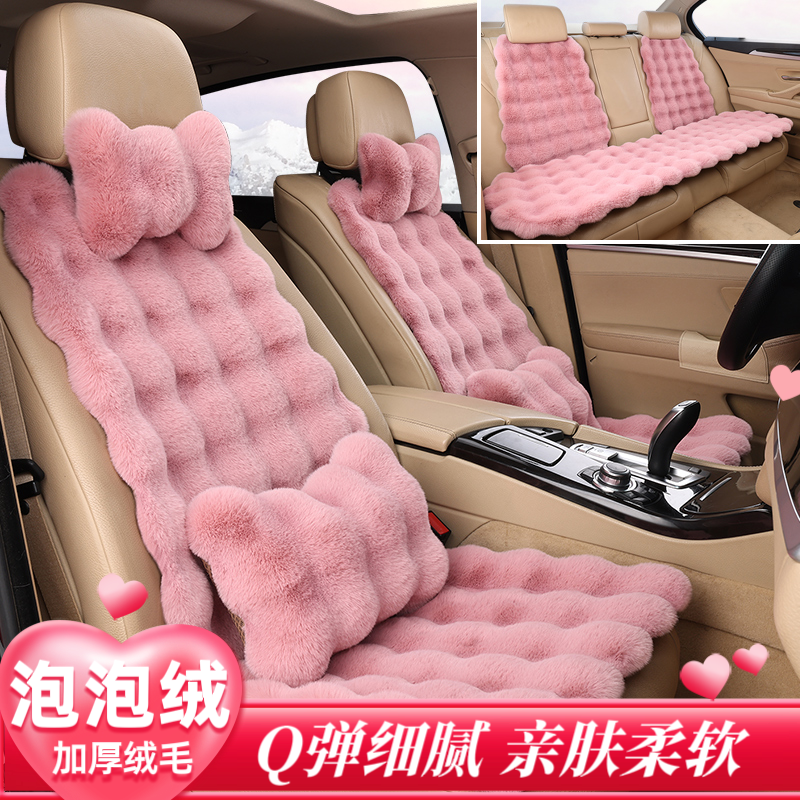 【超软】女冬季汽车坐垫毛绒三件套通用保暖热兔绒座垫加厚防滑