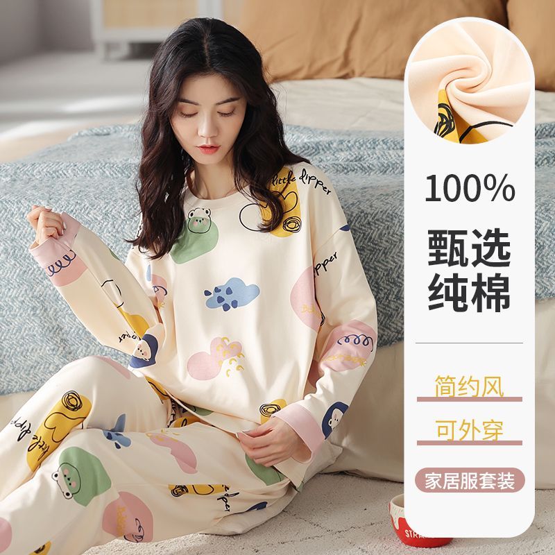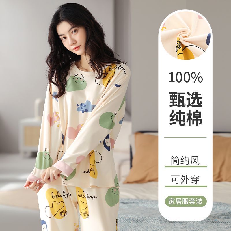 睡衣春秋款女纯棉长袖新款秋季天可爱套头女士家居服两件套装休闲