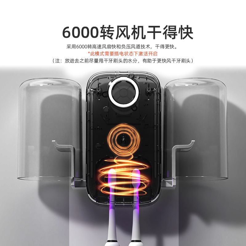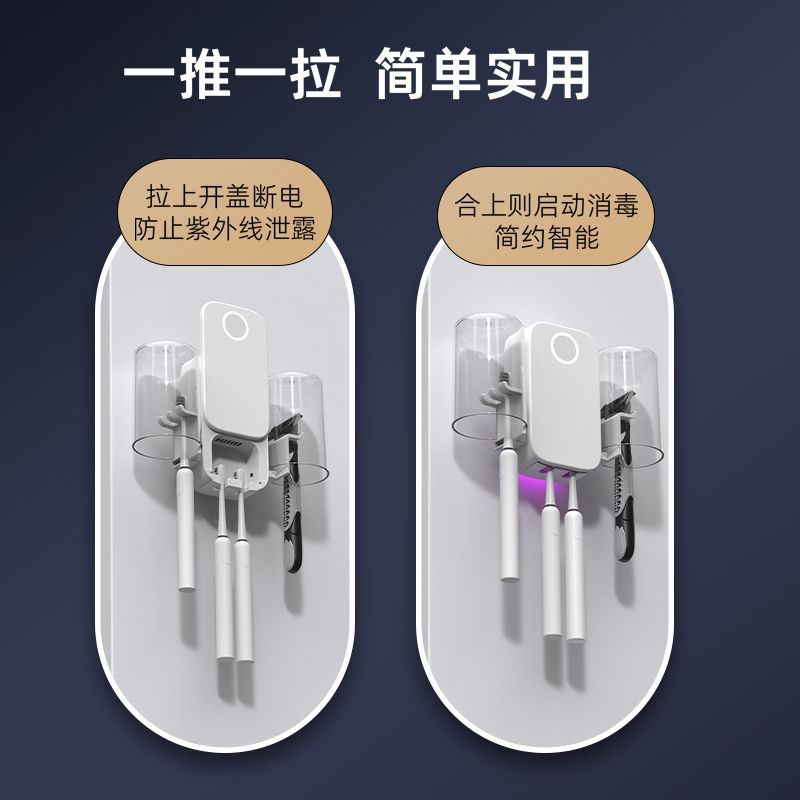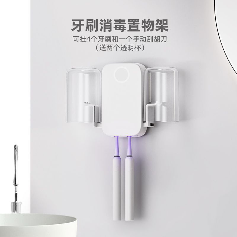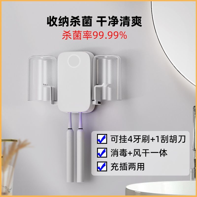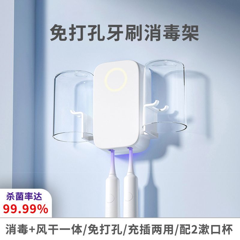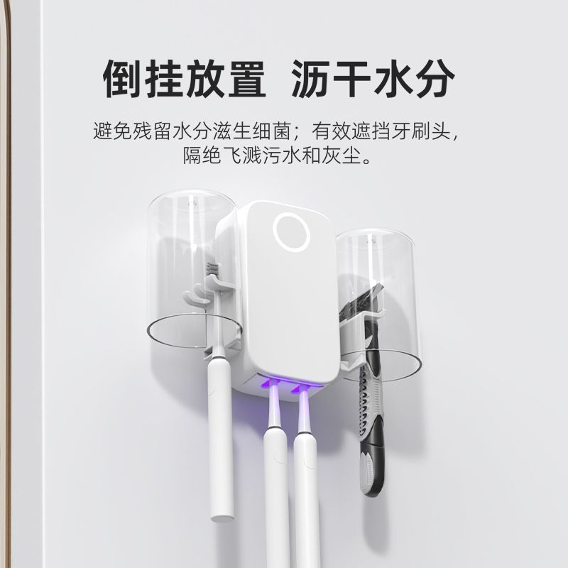 紫外线牙刷消毒架套装杀菌风干家用免打孔送漱口杯倒挂滤水防尘