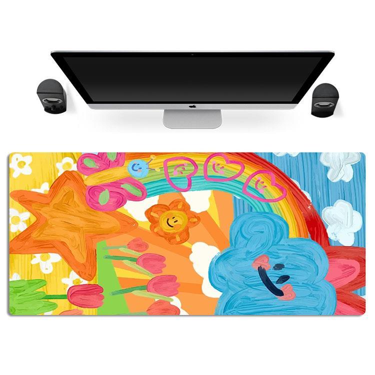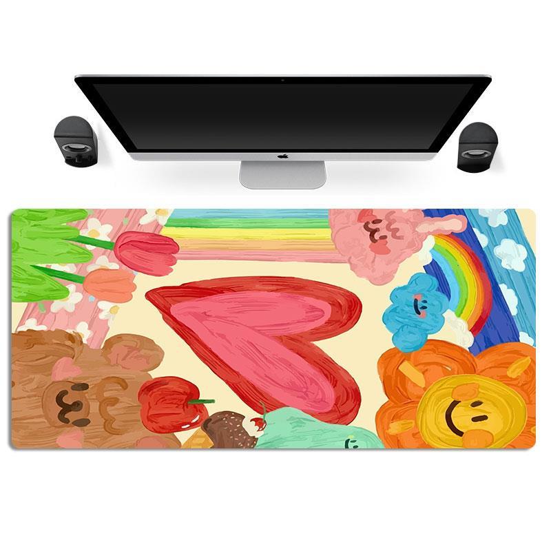 赵露思ins手绘涂鸦爱心女电脑鼠标垫超大精密锁边键盘电竞防滑垫
