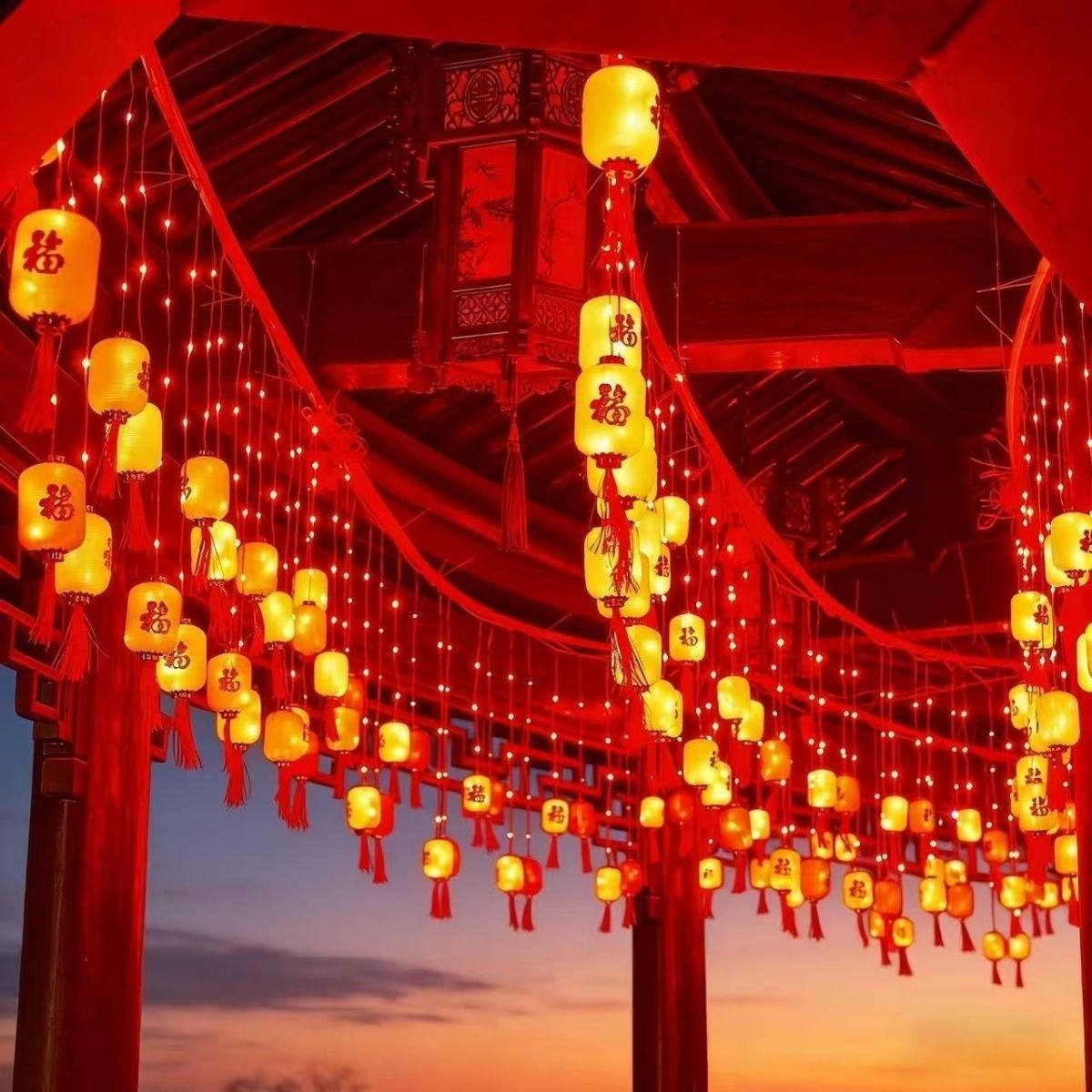 2026马年led大红灯笼福字灯笼串新年装饰灯节日春节喜庆气氛布置