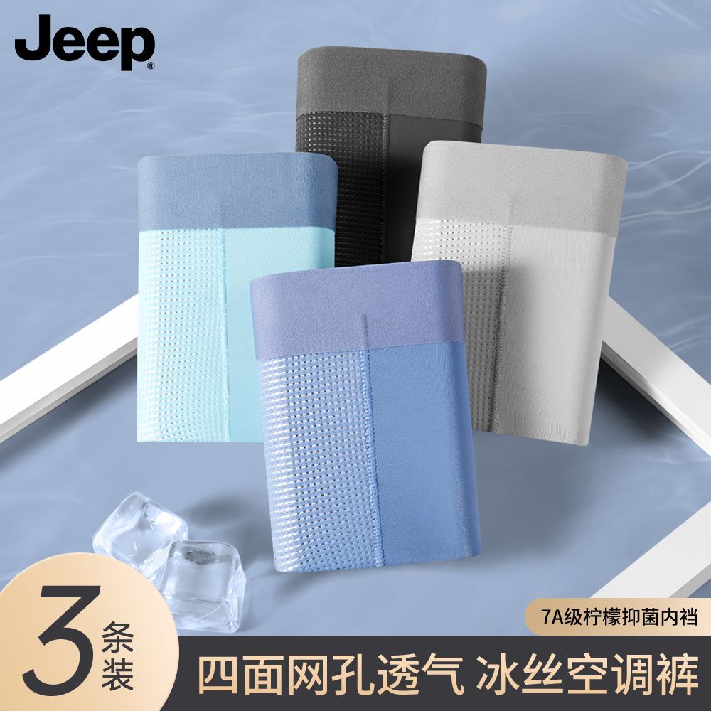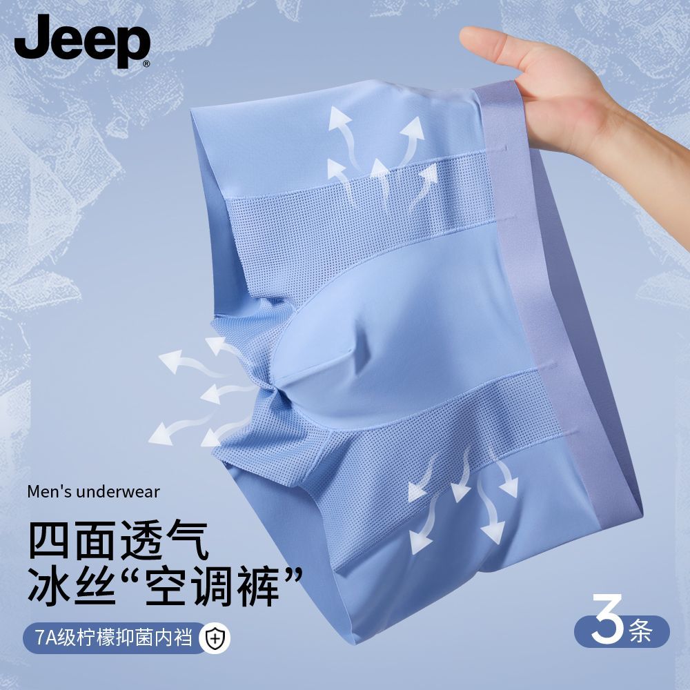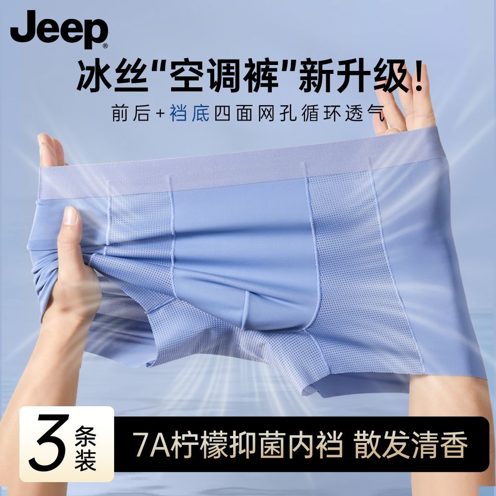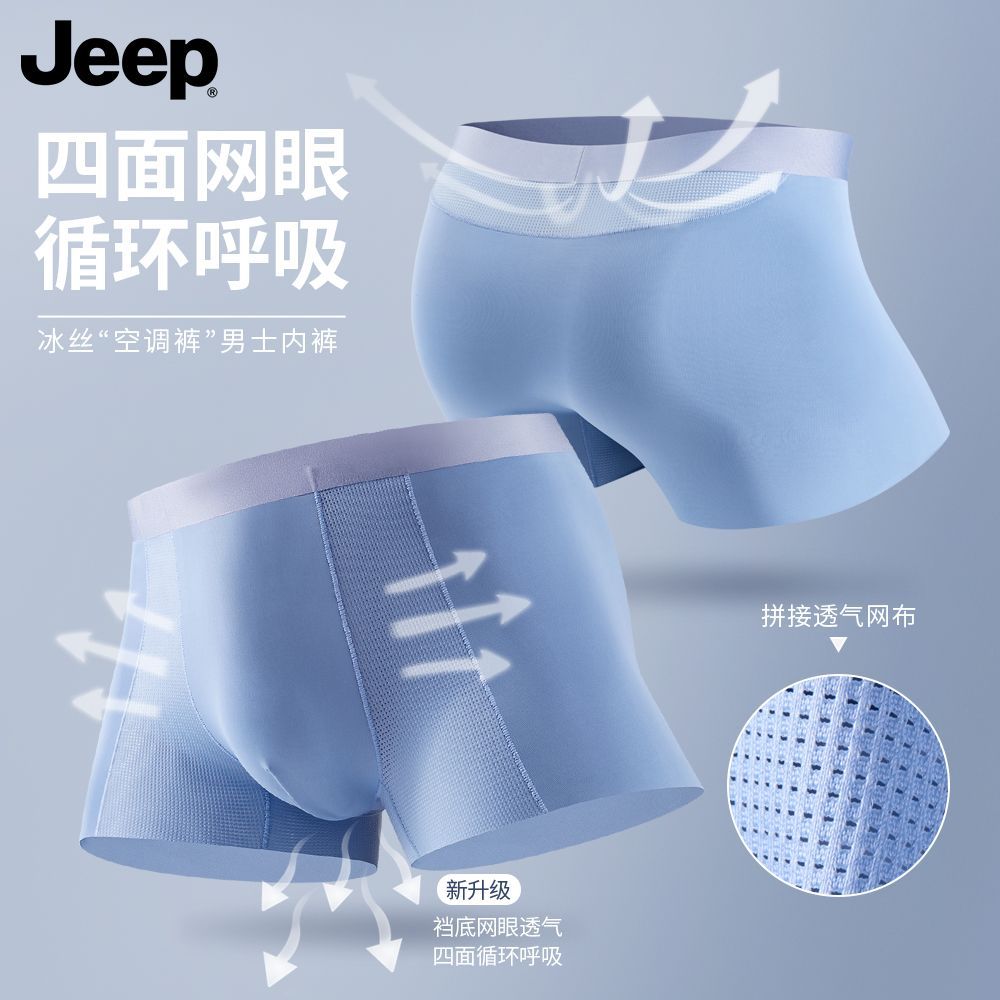 JEEP吉普男士内裤冰丝透气空调凉爽夏季无痕四角男生平角短裤